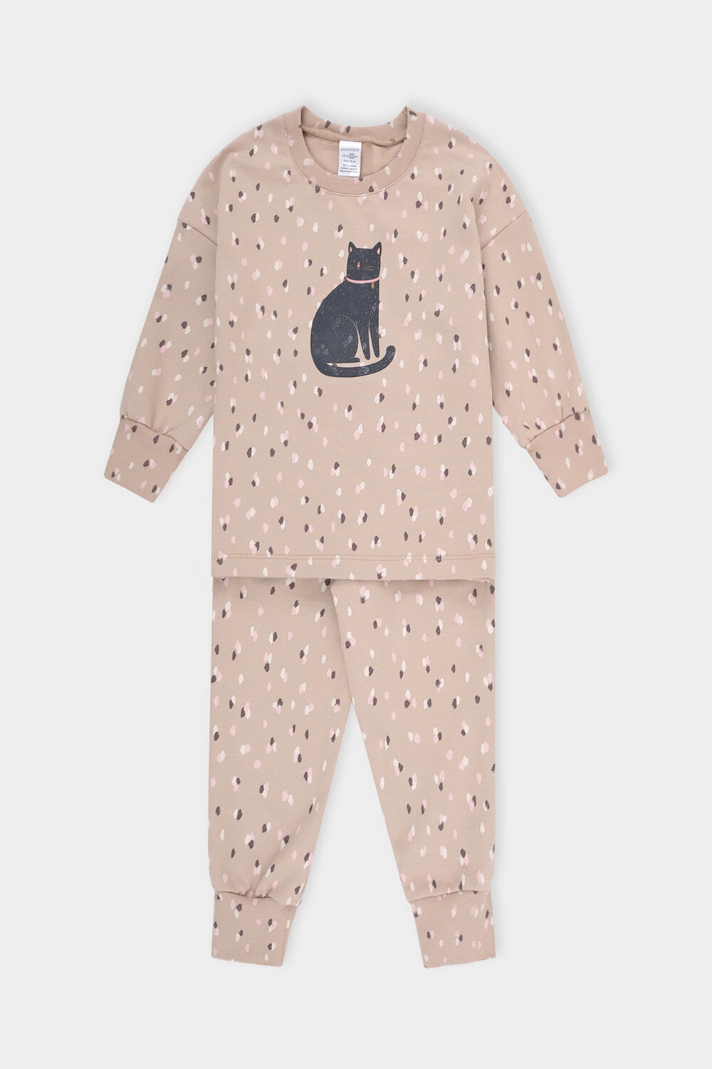 Трикотажный пижамный комплект из футера петли, произведённого из натурального хлопка. У джемпера длинные рукава со спущенными плечами и эластичная мягкая горловина и манжеты. Брюки с удобным поясом на резинке, внизу манжеты. Оригинальная набивка и принт выполнены из стойких, гипоаллергенных текстильных красителей. Все трикотажные полотна производятся в соответствии с нормами Швейцарского сертификата ЭкоТекс.