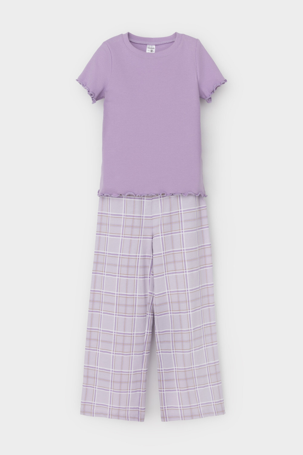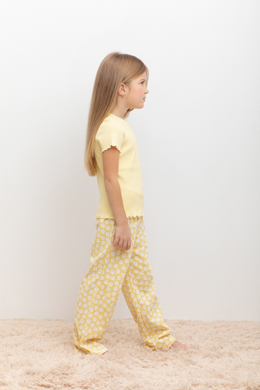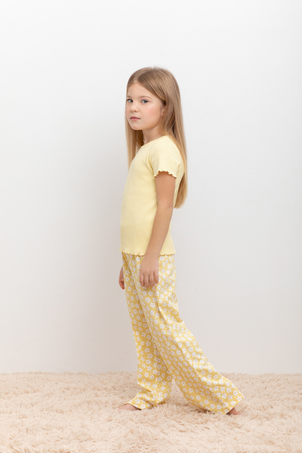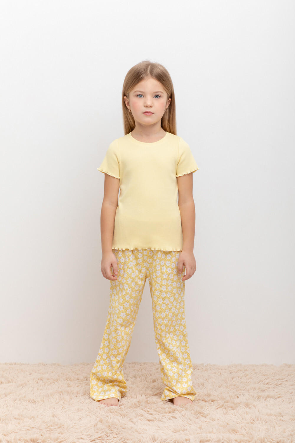 Трикотажная пижама из натурального хлопка. Футболка с короткими втачными рукавами. У футболки рукава и низ изделия обработаны микрооверлоком У брюк в комплекте мягкий, эластичный пояс на резинке. Оригинальная набивка выполнена из стойких, гипоаллергенных текстильных красителей. Комплект сохраняет цвет и форму после многократных стирок. Все трикотажные полотна производятся в соответсвии с нормами Швейцарского сертификата ЭкоТекс.