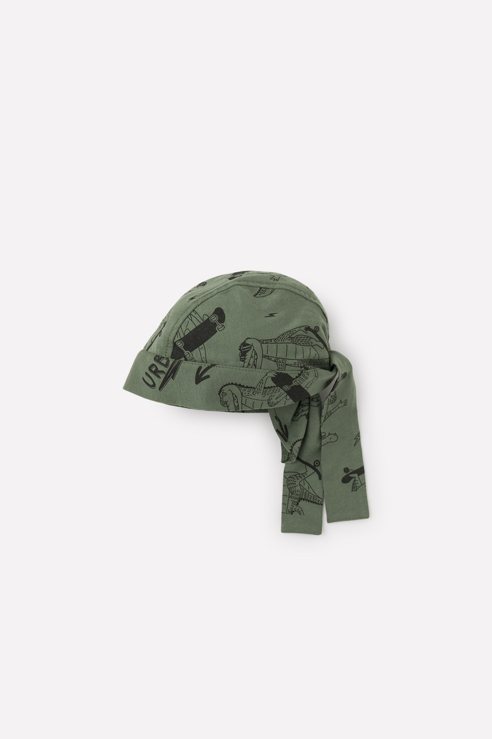Однотонная бандана из натурального хлопкового трикотажа супрем. Украшена принтом. Завязывается на затылке.