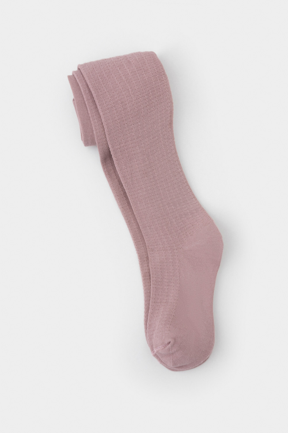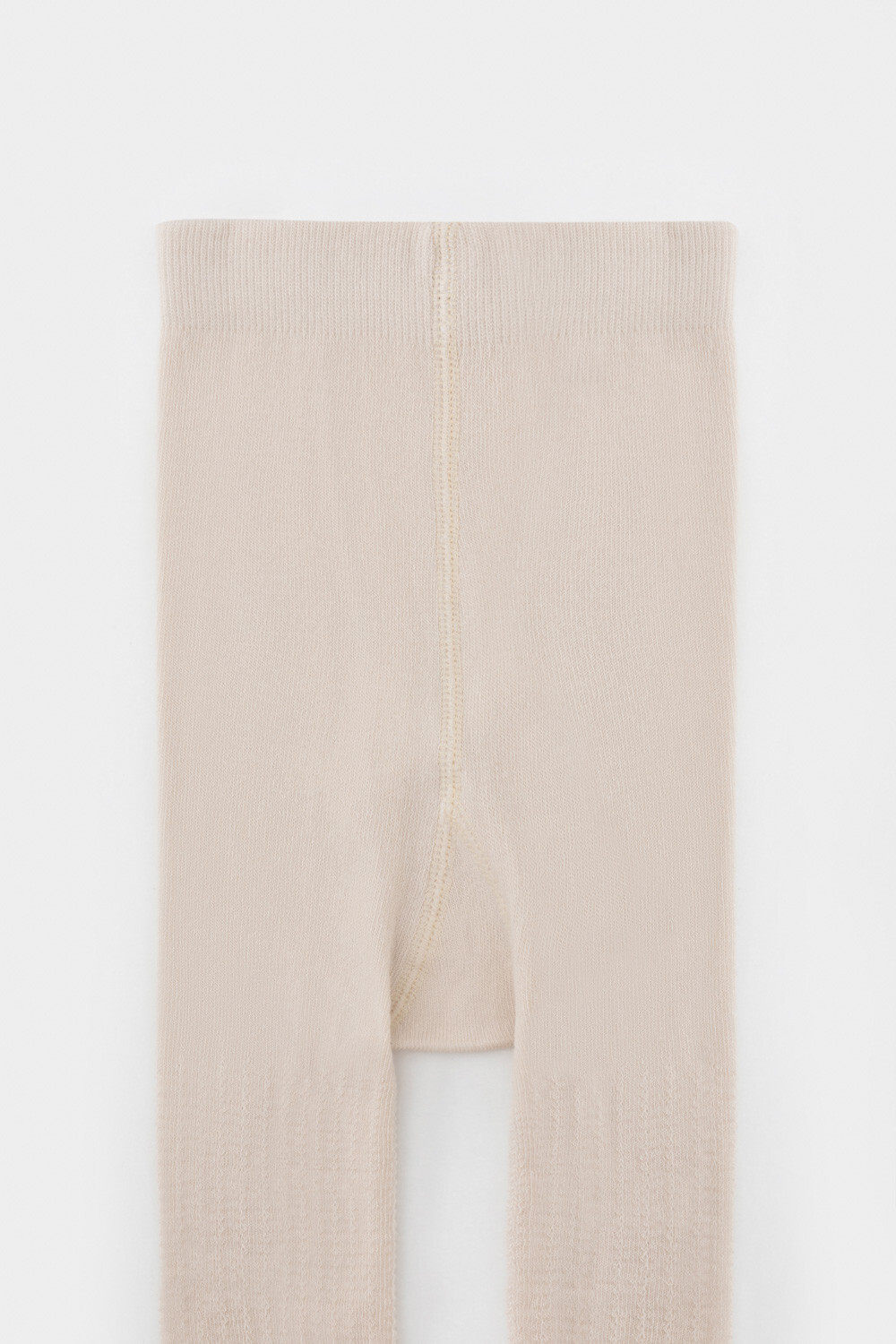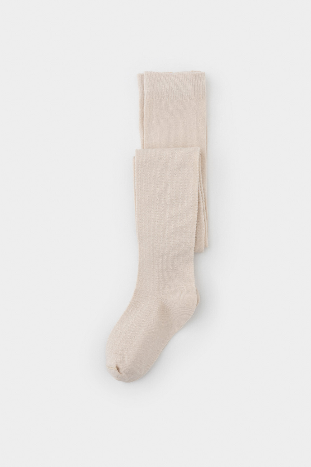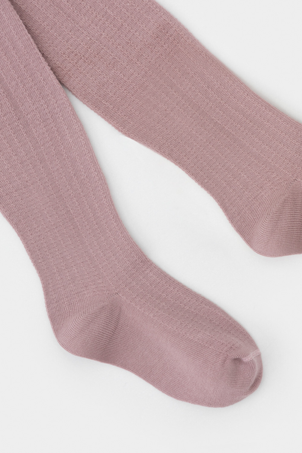 Эластичные колготки для девочки с резинкой в поясе и формованной стопой. Украшены рельефным узором.