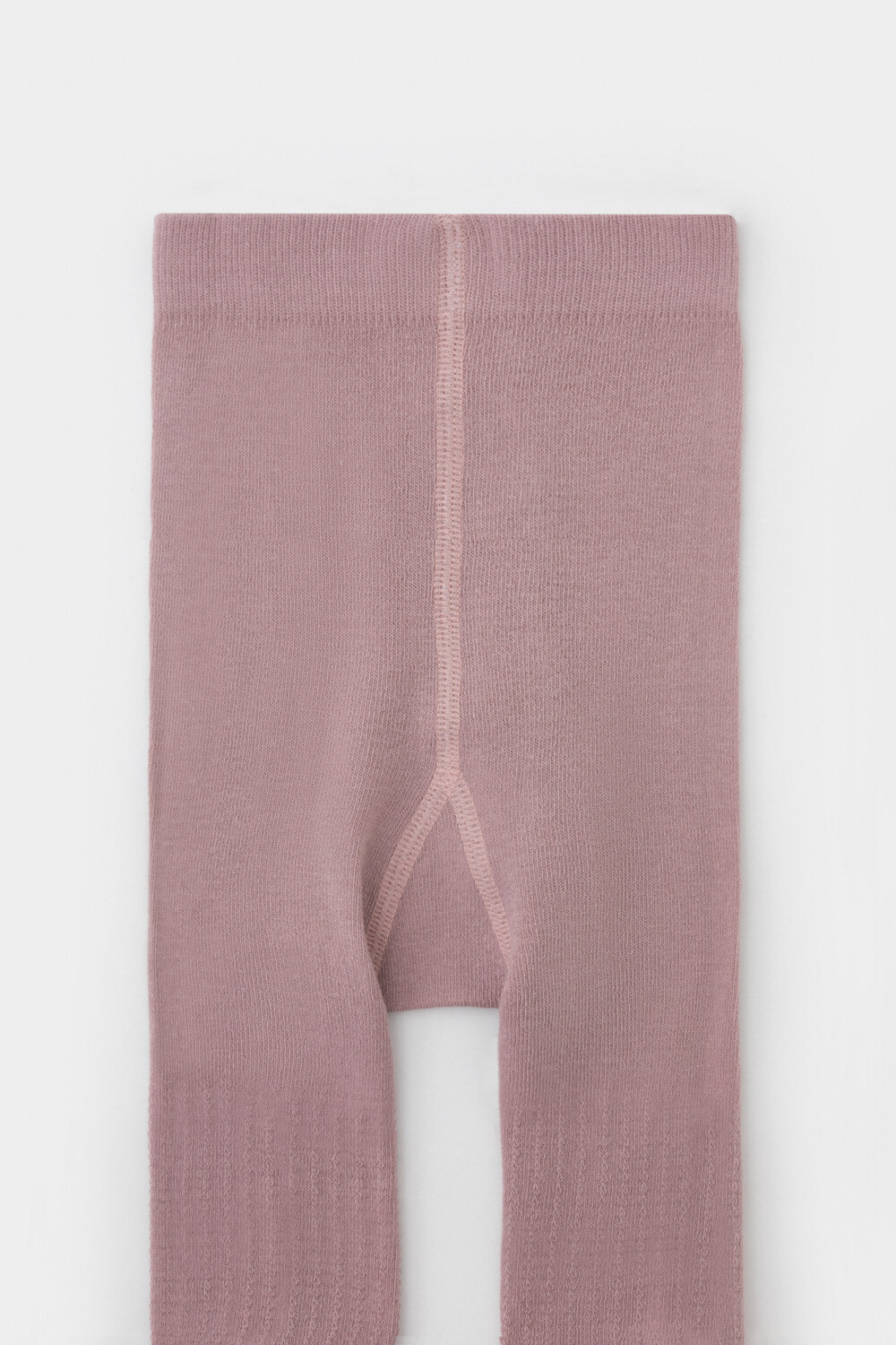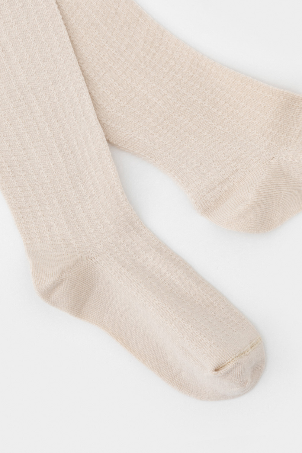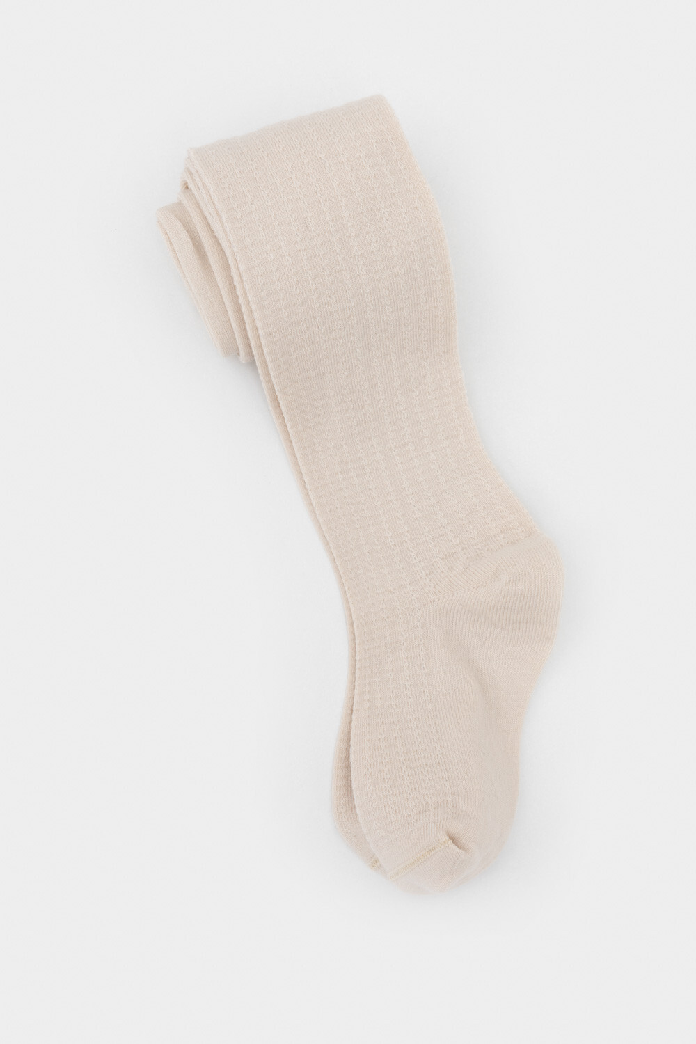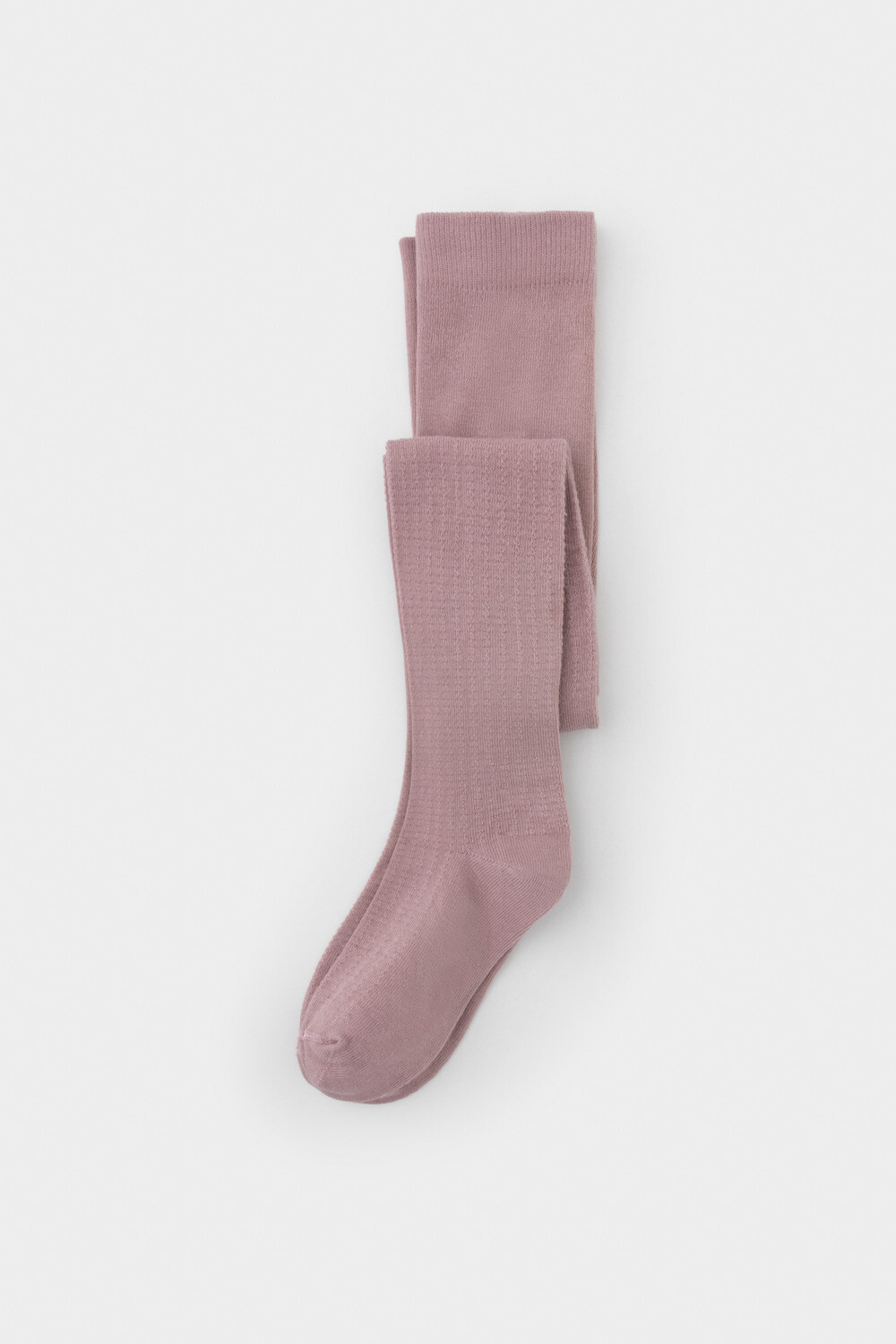 Эластичные колготки для девочки с резинкой в поясе и формованной стопой. Украшены рельефным узором.