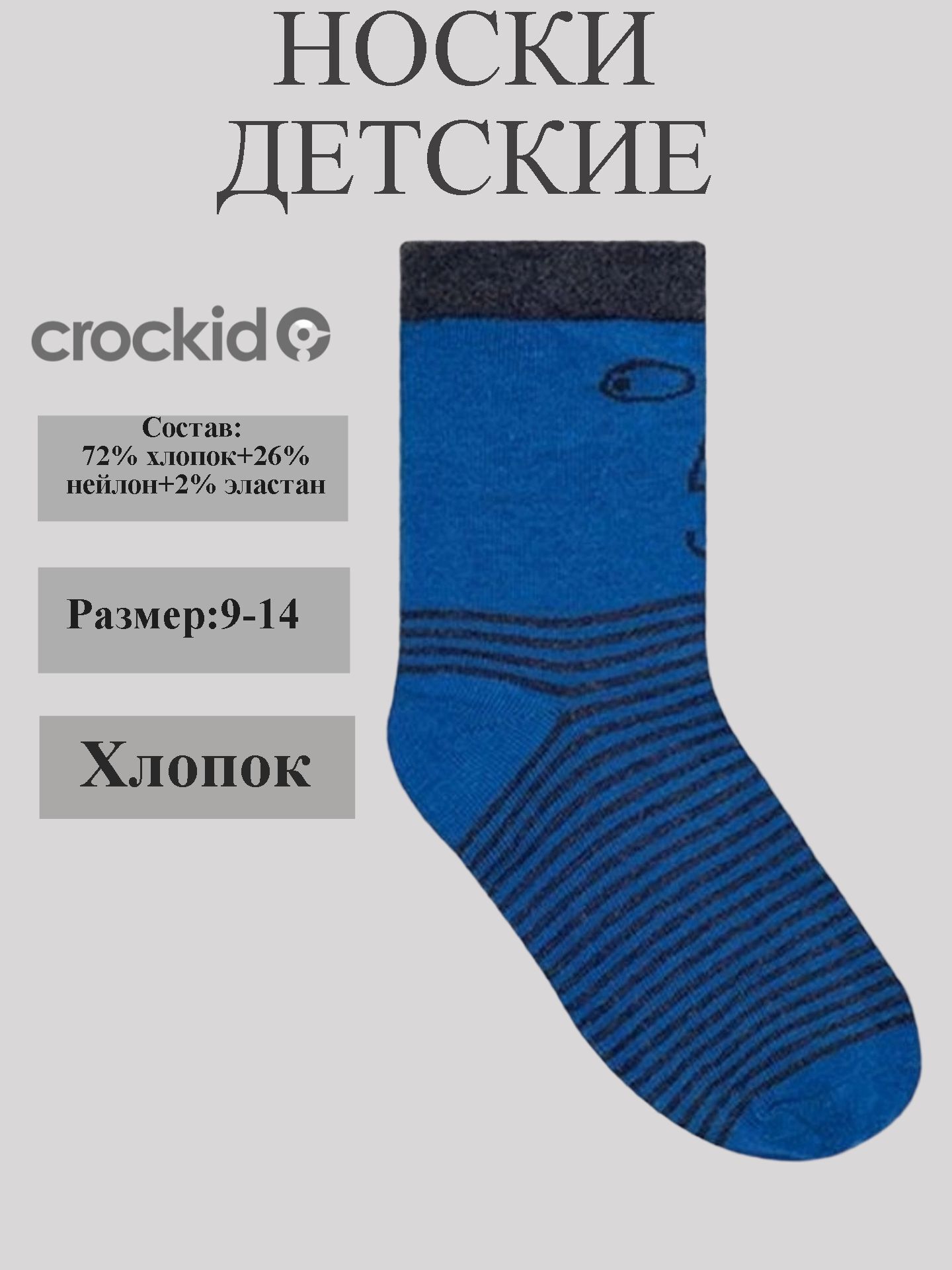 Носки «Crockid» – комфорт и стиль для вашего малыша! Изящные расцветки порадуют ребенка, а натуральные материалы (72% хлопка) обеспечат свежесть и здоровье ножек! Эластичная резинка надежно удержит изделие на ноге во время активных игр, а прочность ткани из нейлона продлит срок службы вещи. Сделано в России по высоким стандартам качества бренда Crockid. Подходит мальчикам, которые любят движение и яркие цвета!
