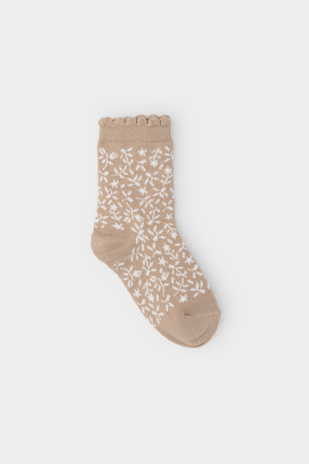 Длинные трикотажные носки для девочки. Эластичная резинка по верхнему краю. Украшены рисунком.