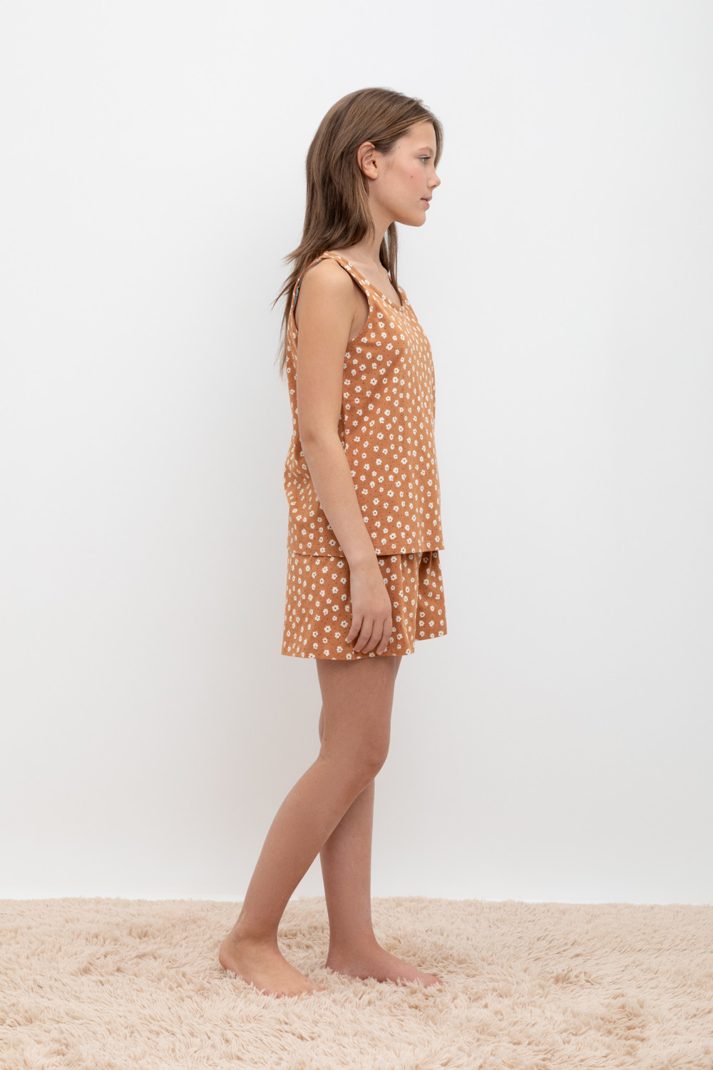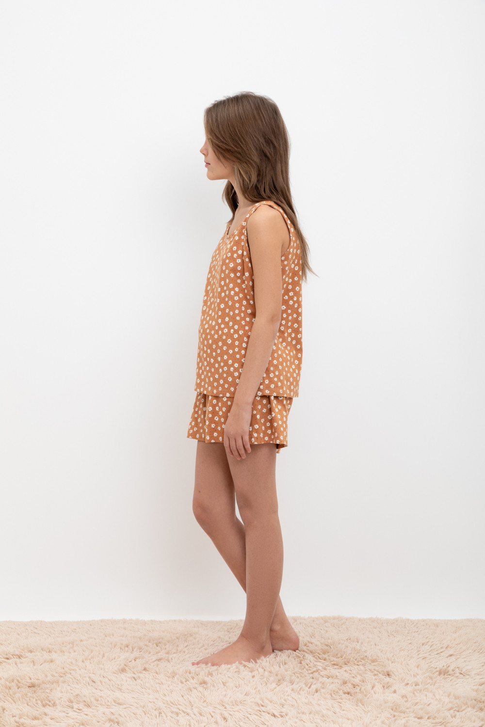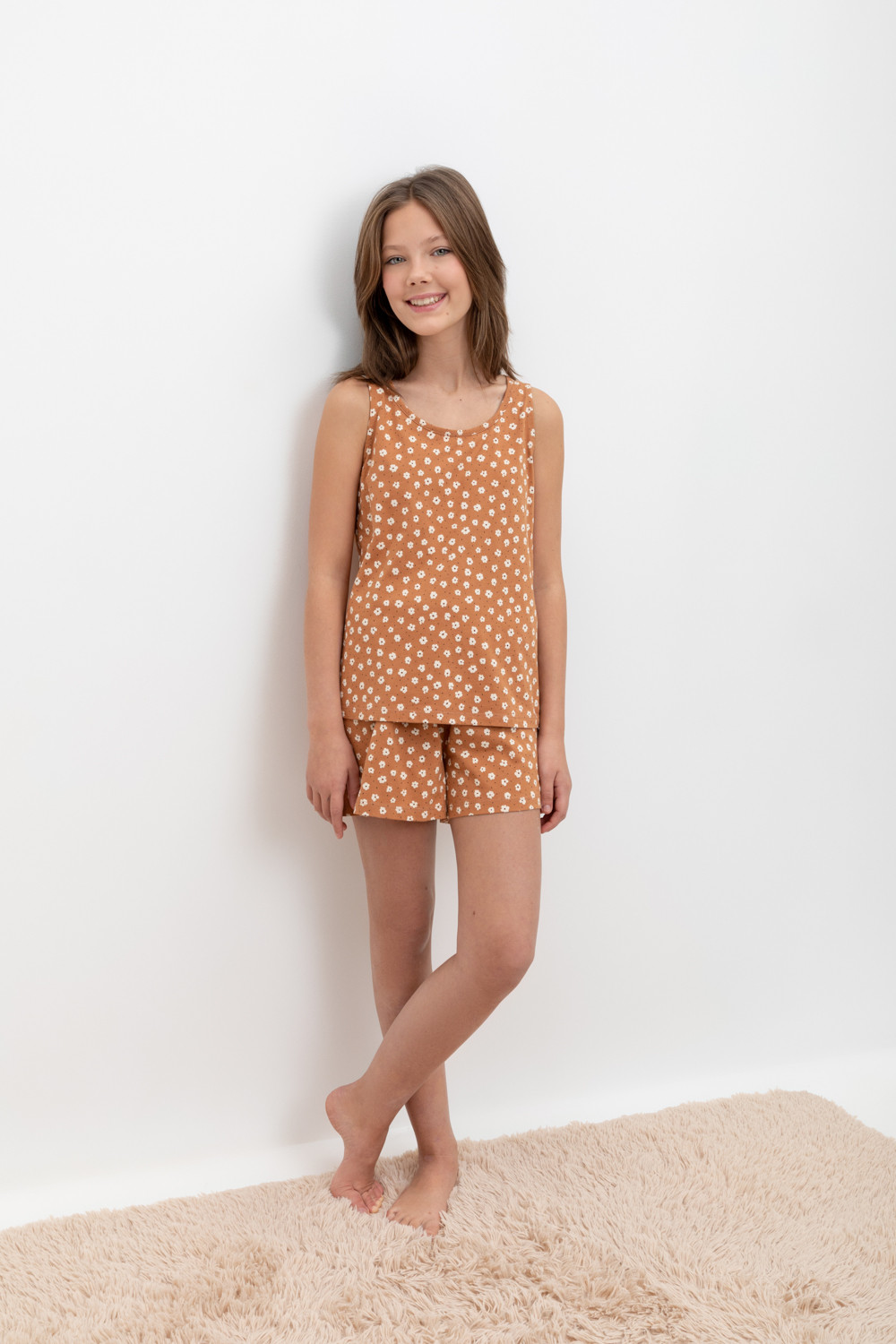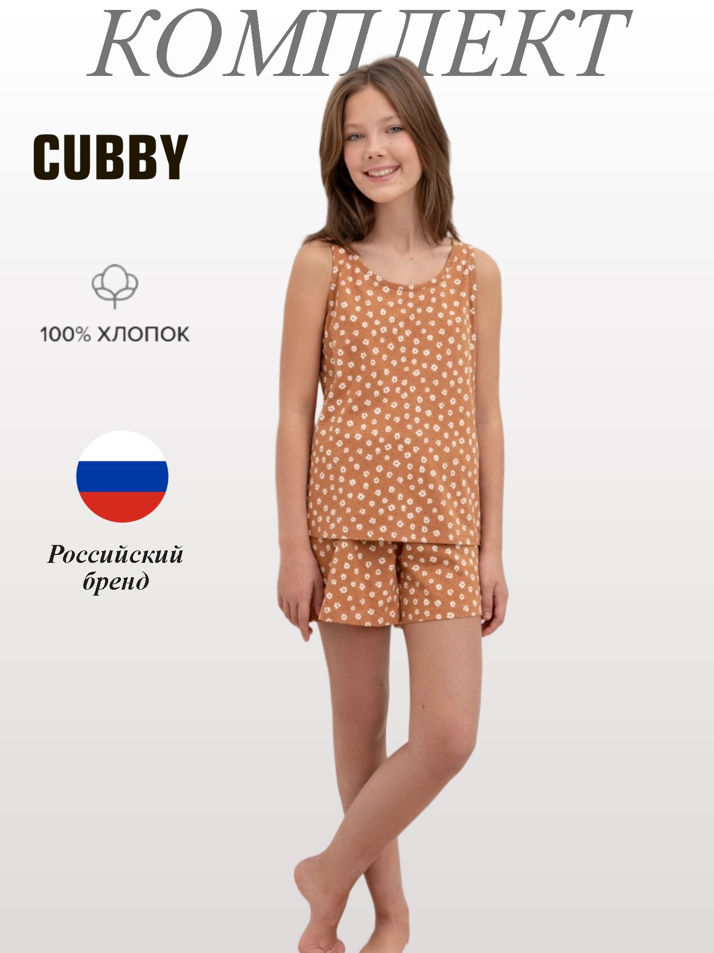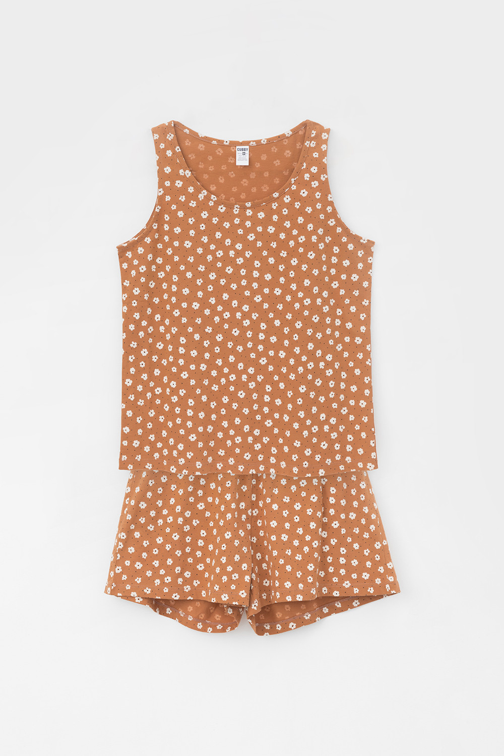 Трикотажный пижамный комплект из натурального хлопка. Майка без рукавов. Шорты с поясом на резинке. Оригинальная набивка выполнена из стойких, гипоаллергенных текстильных красителей. Все трикотажные полотна производятся в соответствии с нормами Швейцарского сертификата ЭкоТекс.
