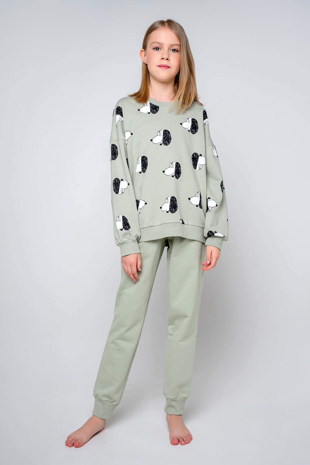 Брюки из петельчатого футера, произведённого из натурального хлопка. Пояс на резинке регулируется с помощью шнура, по низу высокие, эластичные манжеты. Все трикотажные полотна производятся в соответсвии с нормами Швейцарского сертификата ЭкоТекс.