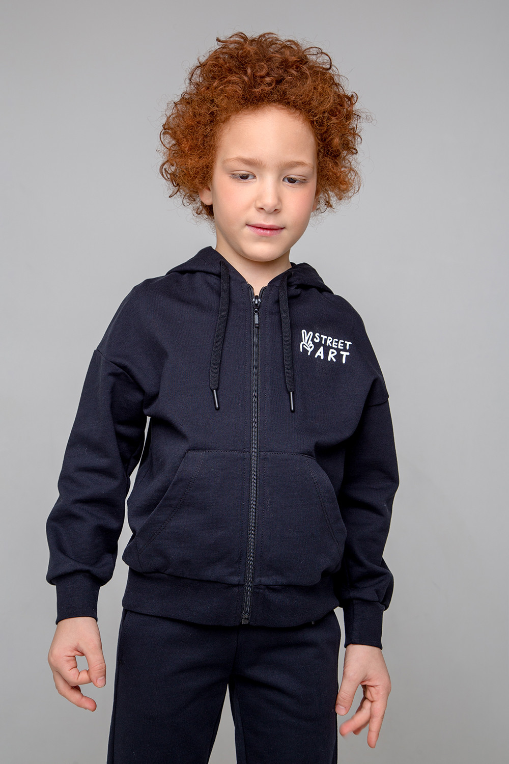 Куртка для мальчика из футера с начесом, произведенного из натурального хлопка. Капюшон с подкладок из супрема регулируется с помощью шнурка. Предусмотрена защита шеи и подбородка. У изделие длинные рукава со спущенными плечами, накладные карманы спереди, эластичные манжеты и пояс. Оригинальный принт выполнен из стойких текстильных красителей. Куртка сохраняет цвет и форму после многократных стирок.