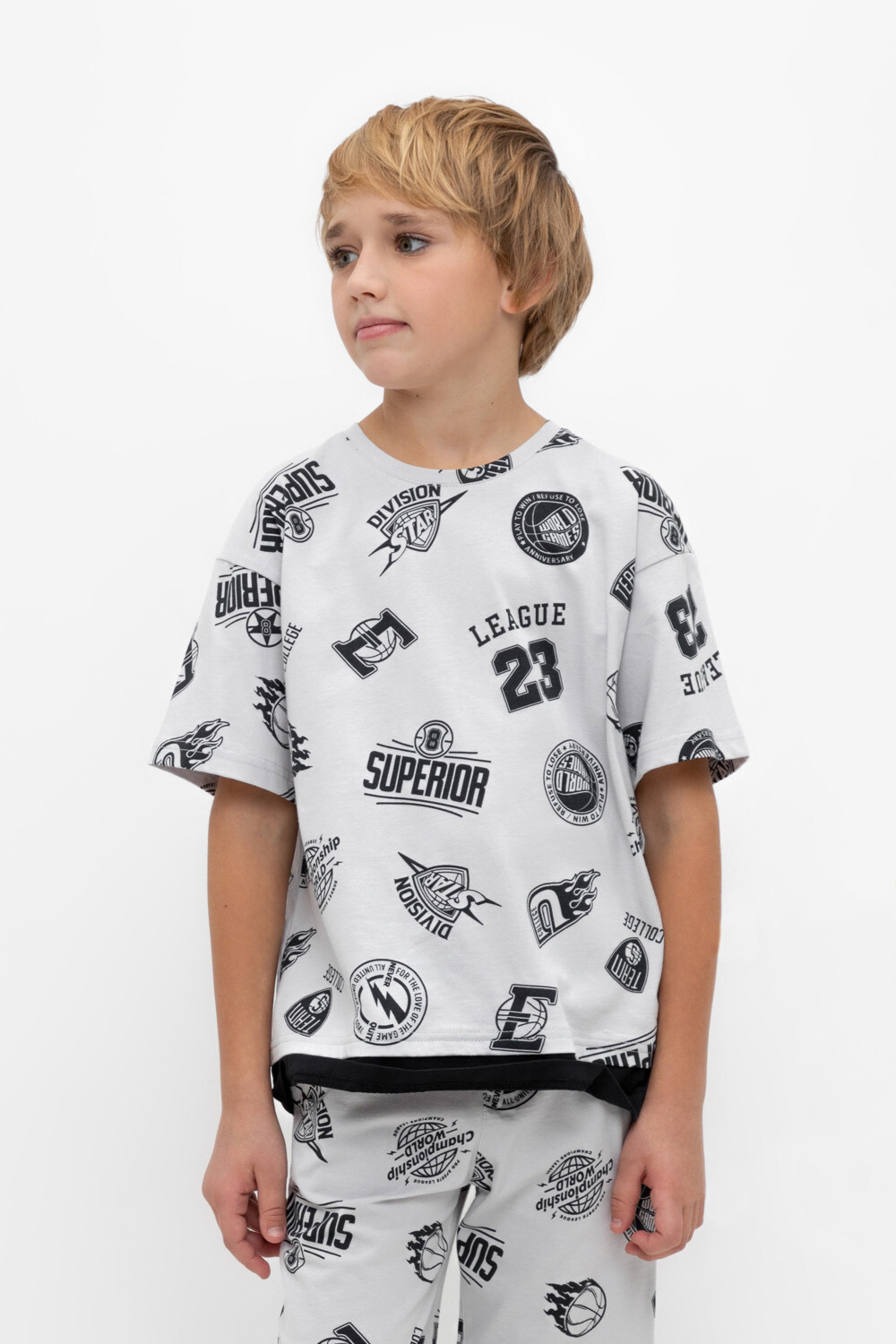 Футболка для мальчика из высококачественного набивного трикотажного полотна. Оригинальная набивка выполнена из стойких текстильных красителей.