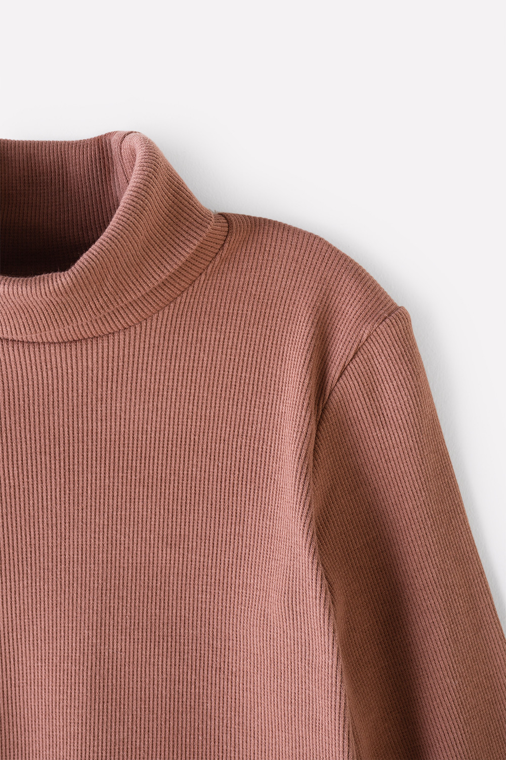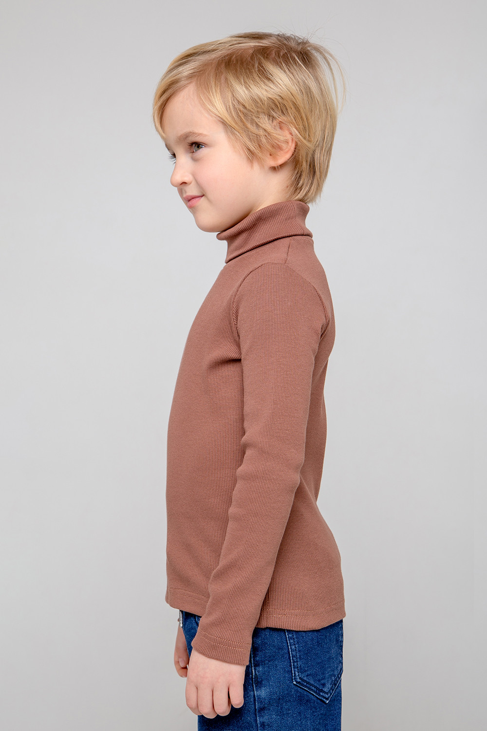 Однотонная водолазка для мальчика из каршкорсе, произведенного из эластичного натурального хлопка. Изделие имеет воротник с отворотом и длинные втачные рукава. Водолазка сохраняет цвет и форму после многократных стирок.