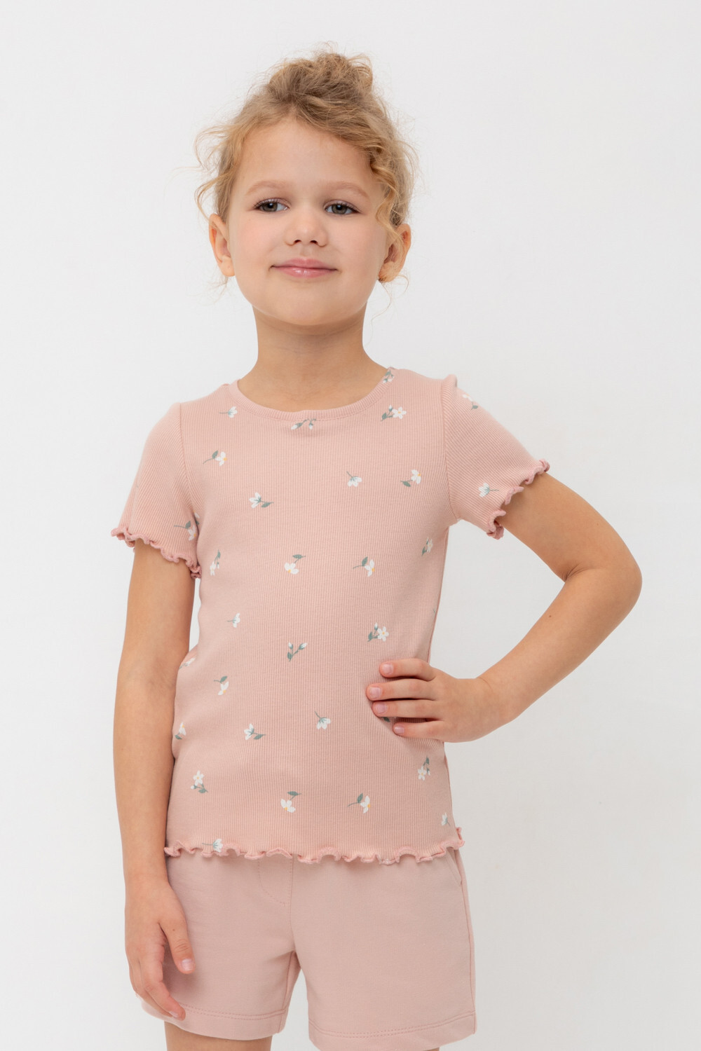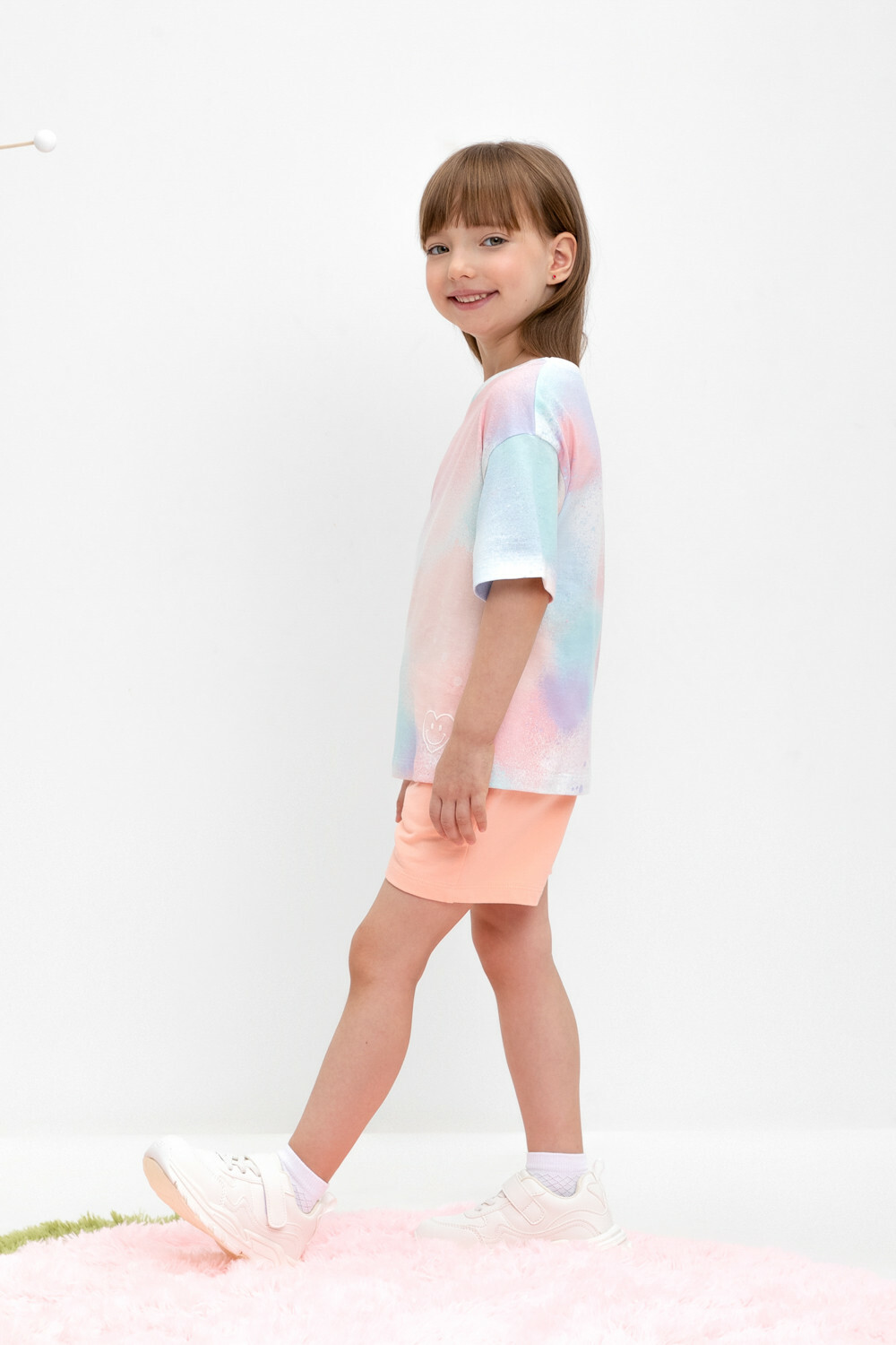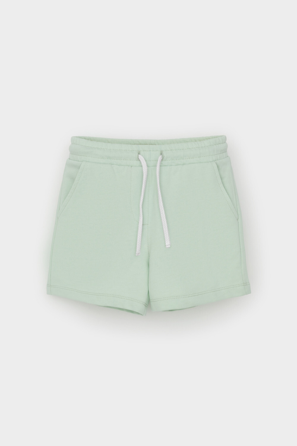 Трикотажные шорты для девочки из петельчатого футера. Эластичный пояс на резинке регулируется по ширине с помощью шнурка, по бокам два удобных кармана.