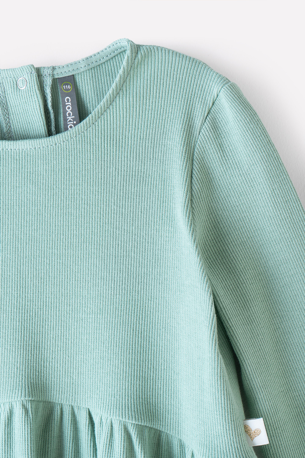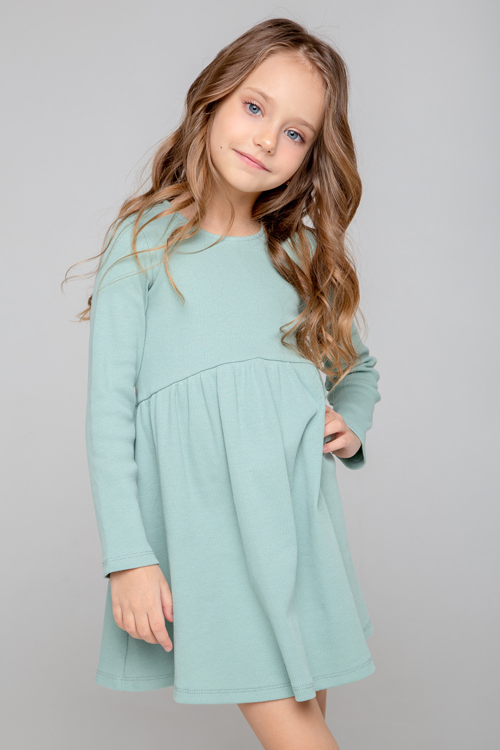 Платье для девочки из эластичного материала - кашкорсе, произведенного из эластичного натурального хлопка. Длинные втачные рукава и сборка по талии. Для удобства имеется застежка на спинке на кнопки. Изделие сохраняет цвет и форму после многократных стирок.