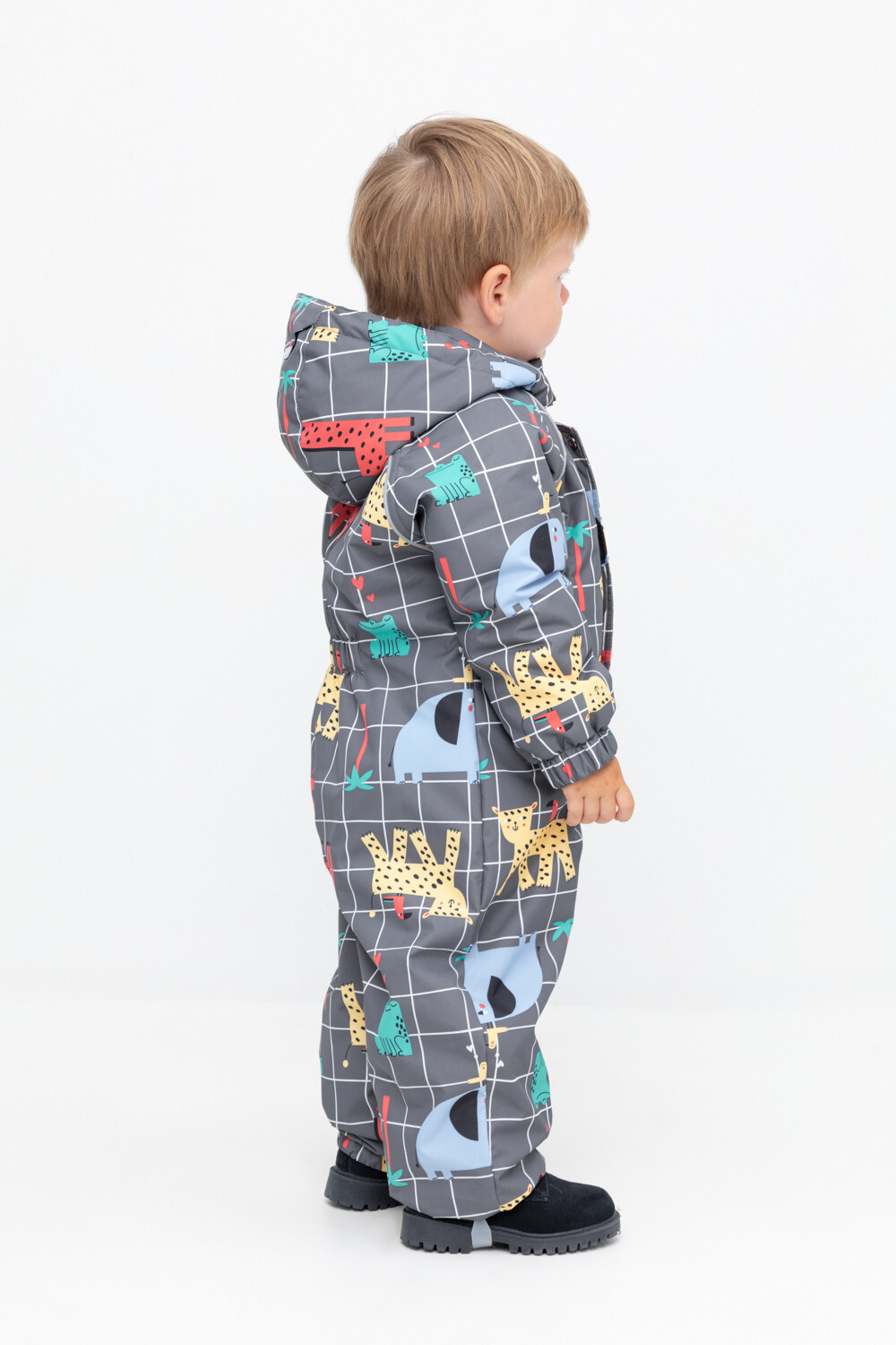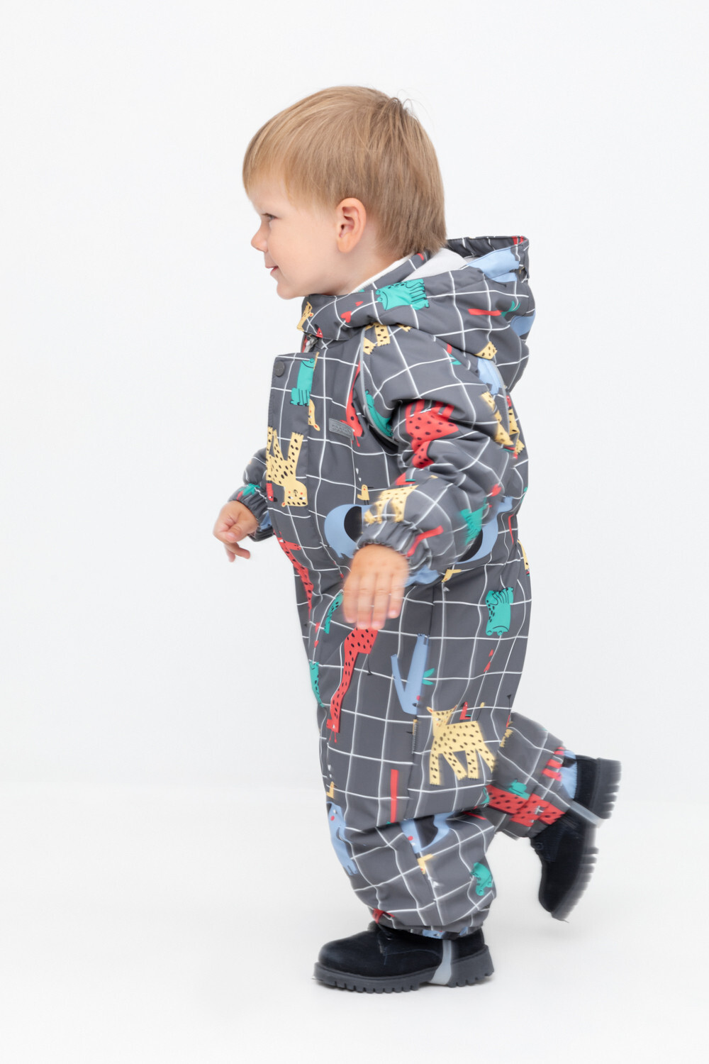 Демисезонный комбинезон ясельный с утеплителем Слайтекс Найс® 120 г/м2. Выполнен из мембранной ткани с дополнительной тефлоновой обработкой. Данный вид обработки предохраняет изделие от загрязнения и лучше отводит влагу. Подклад из 100% хлопка. Удлиненная молния для легкого одевания с защитой подбородка. Ветрозащитная планка фиксируется на липучках и кнопках. Утяжка на капюшоне с потайными стопперами. По низу рукавов и брючин, а также на спинке изделия предусмотрена эластичная резинка для лучшего прилегания. Для фиксации комбинезона используются съемные силиконовые штрипки. В размерах 68-74, 74-80 функциональные отвороты на рукавах и брючинах.